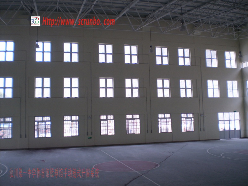 汶川縣****中學即原汶川威州中學,該項目系5.12汶川特大地震后的災后援建項目,該項目由廣東省江門市援建,占地31100㎡,總投資超過10億。手動鏈式開窗系統為新建室內體育館窗控工程,體育館由室內籃球館和室內游泳館兩部分組成,于2009年6月進場施工,2009年8月完工,共計168㎡,共采用鏈盒224只,重型手搖機28套,采用1控8的控制方式,即1套重型手搖機控制8扇窗戶。