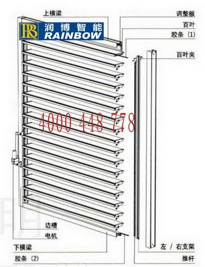 2、每個葉片側面在設計上有密封條及多種密封裝置,橫向葉片錯位搭接。****防風、防雨性能;
