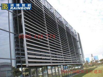電動梭形百葉遮陽葉片呈梭形(又名魚腹形),雙弧面,造型優美,具高科技感,葉片截面大且為中空結構,強度高,符合外墻百葉韌度及延展性要求,適合大跨度使用,能起到保護玻璃幕墻的作用; • 葉片規格 100mm,150mm,200mm,300mm等